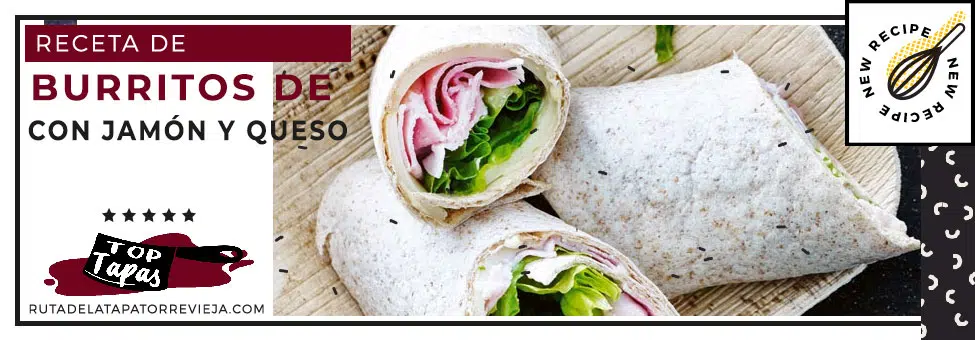 Los burritos con jamón y queso son uno de los platos más representativos de la extensa y mundialmente afamada gastronomía mexicana. De hecho, su amplia aceptación ha originado la aparición de una variante llamada warp, muy de moda en la actualidad en Estados Unidos y parte de Europa. A continuación te presentamos una receta de burritos o warp que puedes elaborar a partir de las tortillas de harina, hoy disponibles en cualquier establecimiento especializado.